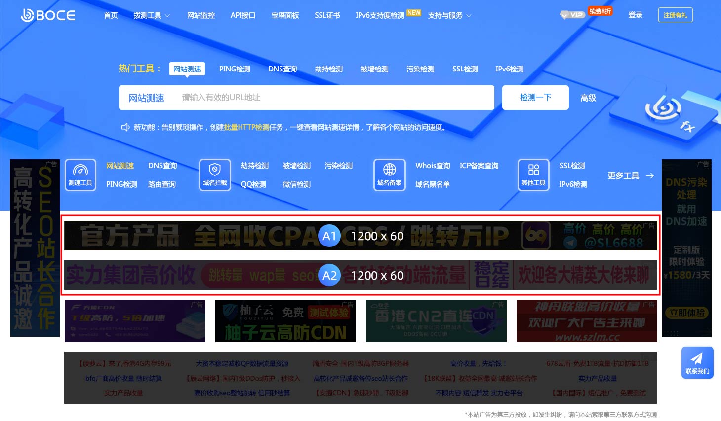 | 前端页顶部导航条 | 全局页面头部广告 | A1~A2 | 500*60 | $4000/月 | A1、A2 |