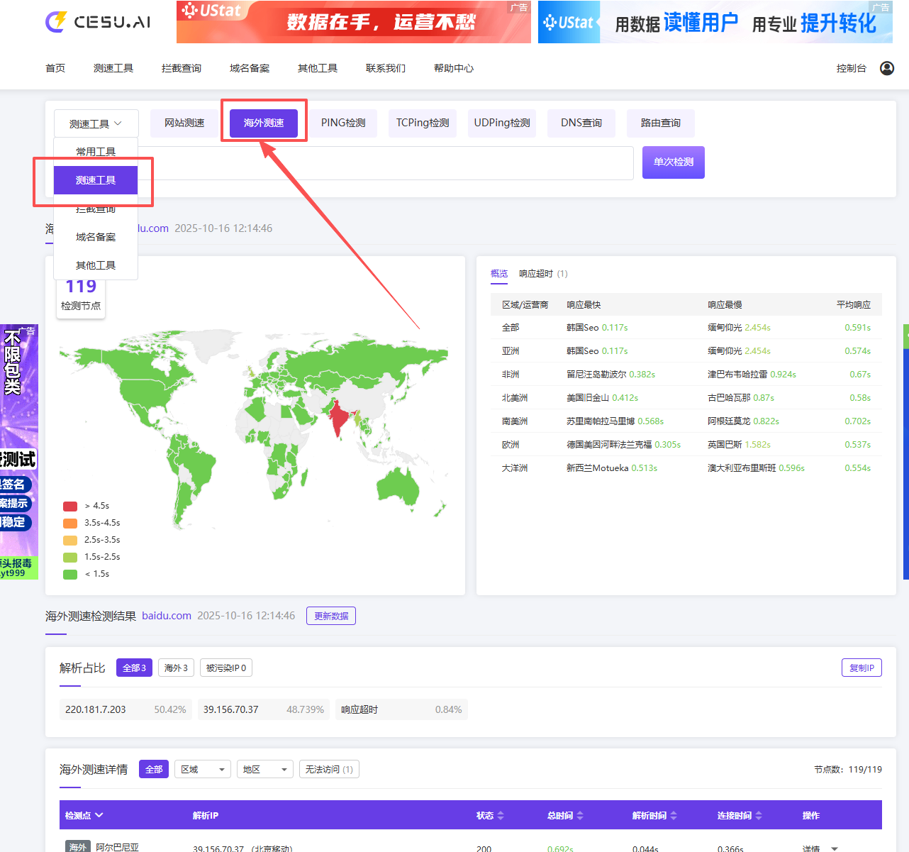 为帮助您精准、实时地了解网站在海外地区的访问情况,解决海外用户访问网站时可能遇到的可用性低、响应缓慢等问题,今日正式推出海外测速工具,为您的海外业务发展保驾护航!